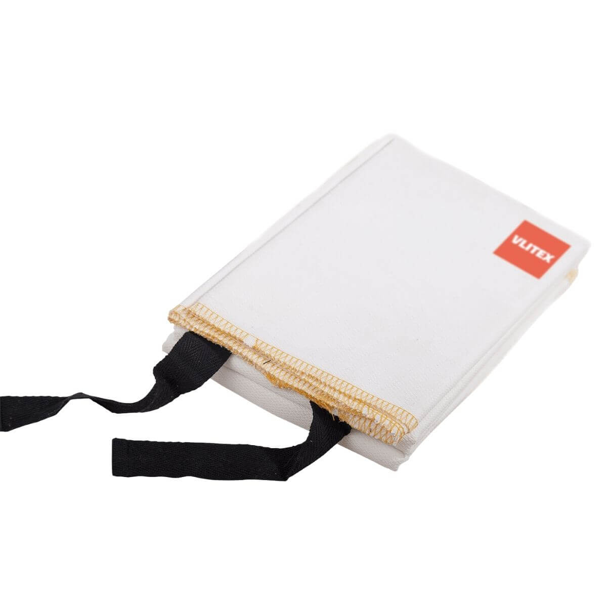 Die kleine unbeschichtete Feuerlöschdecke ist für Küche oder Werkstatt gedacht. Sie wird einfach über das Brandobjekt gelegt und erstickt das Feuer. In der passenden Tasche mit Wandhalterung ist sie immer griffbereit.